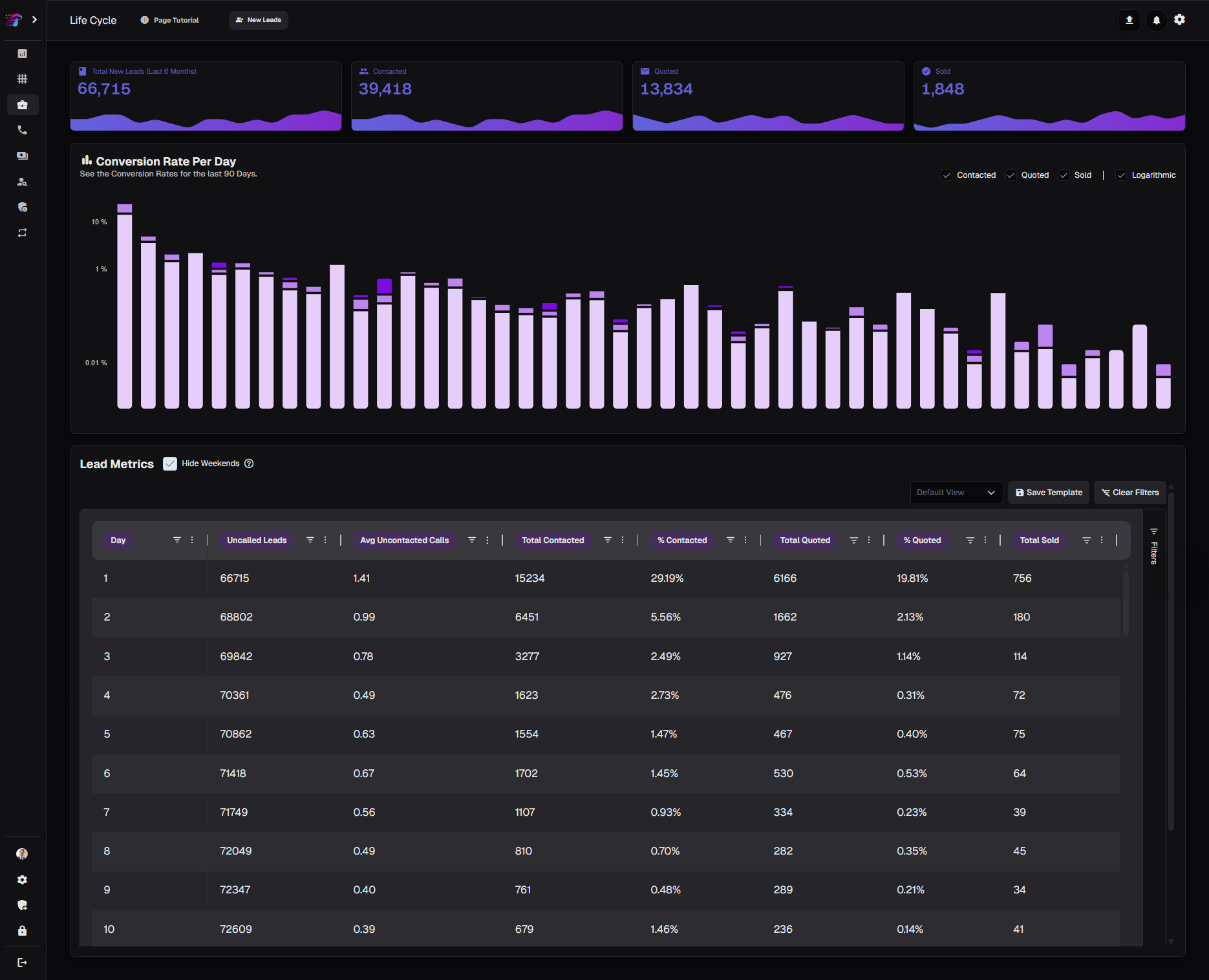 We analyze the lifecycle of your leads to show you how conversion probabilities change with every passing day. See exactly how many calls it takes to close an aging lead and adjust your team’s workflow to maximize the value of every prospect in your pipeline.