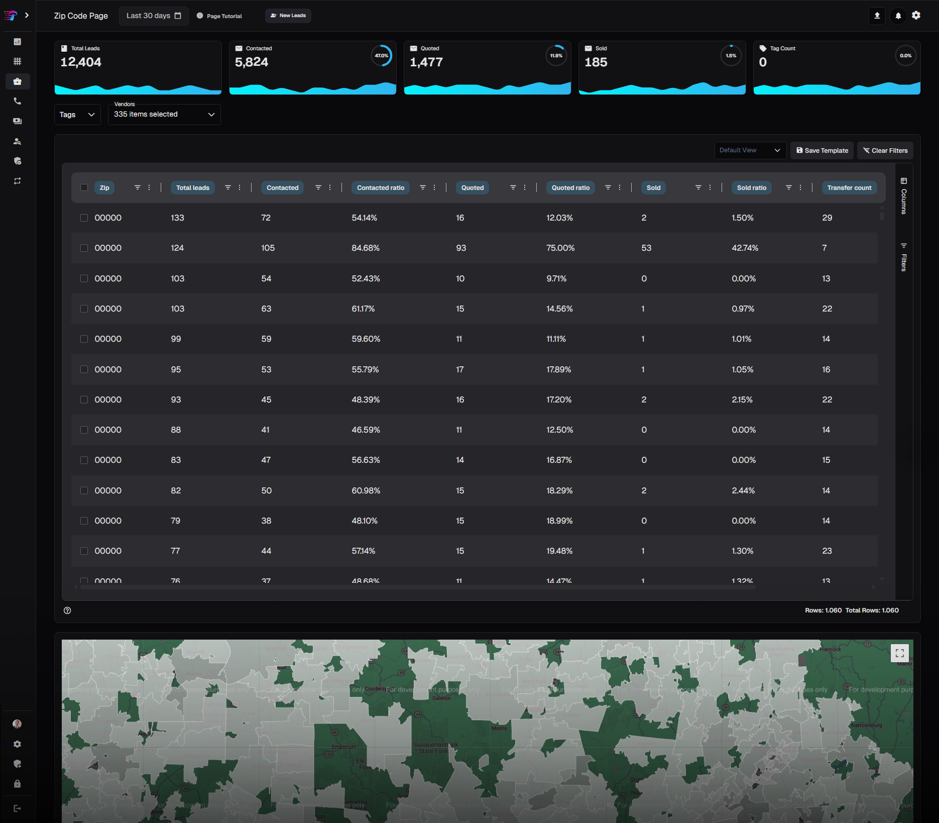Not every territory performs the same. We help you find your agency’s specific sweet spots by filtering contact, quoted, and sold rates down to the zip code level.