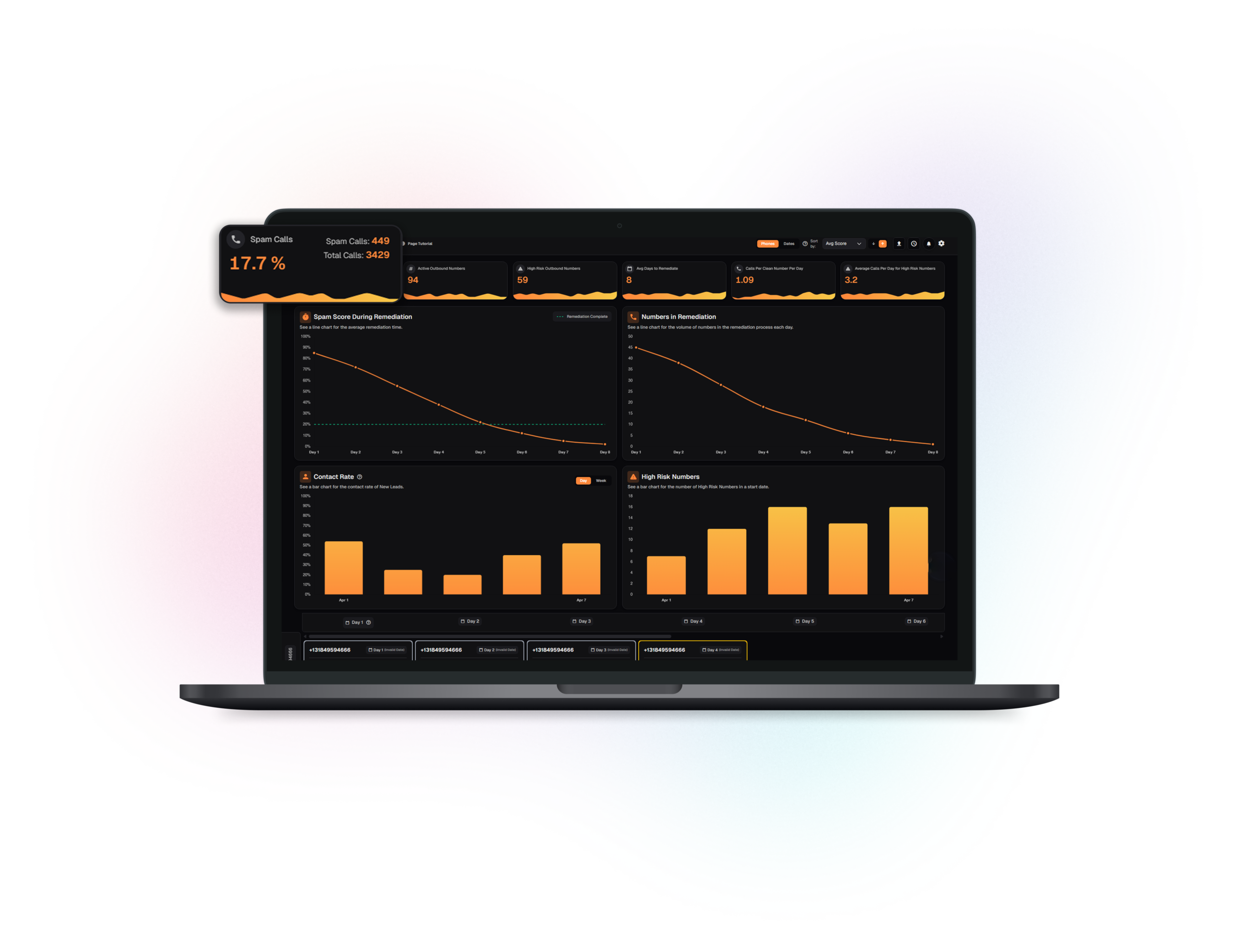 This workspace helps teams stay ahead of reputation and labeling issues that can quietly impact answer rates and trust. Track how activity and outcomes evolve over time and identify which calling assets need attention to real contact success. The goal is fewer surprises on the dialer—giving leaders and operators a shared, consistent view to prioritize fixes, guide behavior, and decide when to rotate or retire numbers before performance drops turn into a bad month.